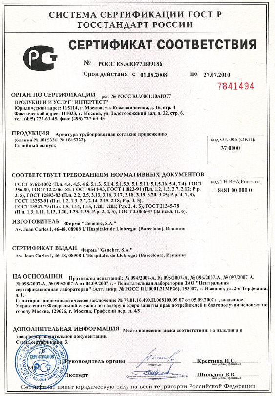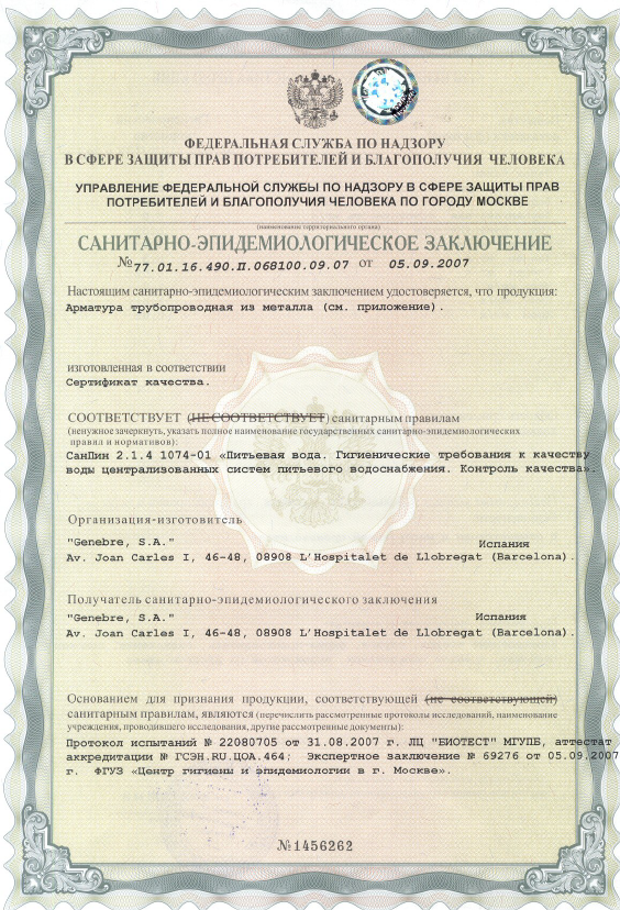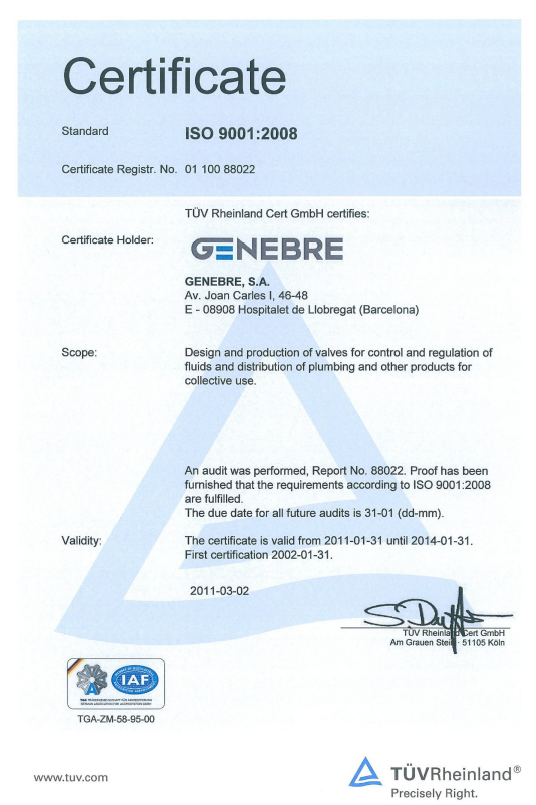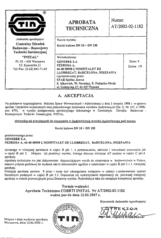 Genebre have a number of approvals - see below